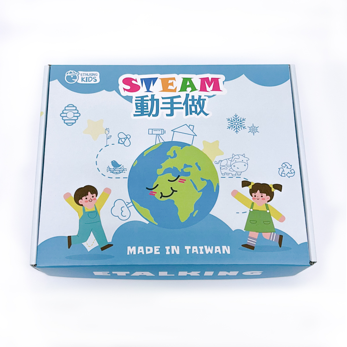 英語程度比較初階的孩子可以和家長一起操作,孩子也可以獨立完成,操作說明書中可直接掃描QR code線上觀看教學示範影片,每個影片約3分鐘,由老師全英講解實作,除了觀看教學示範影片外,亦可報名Etalking Kids兒童線上英語課程,搭配線上外師互動,跟著外師學習操作,外師會詳細的解說過程,透過螢幕,師生一個一個步驟進行,孩子們在操作的過程中,學會提問與探索,寓教於樂。